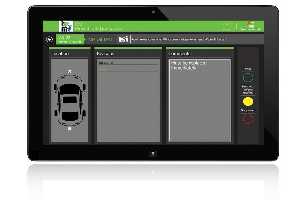 The BM FlexCheck is designed to collect all data from the vehicle inspection process and store this data in central databases for further processing.